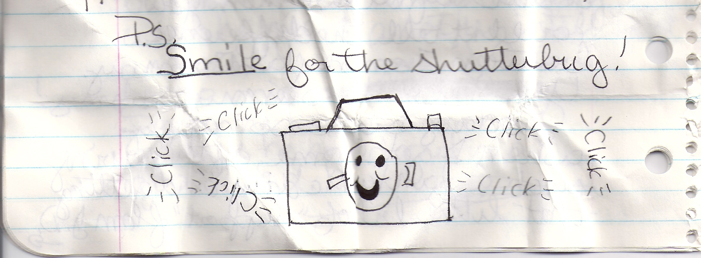 I love babysitting for the kid I babysit for, he’s so cute (cute eyes) Hes just a little over 2 years old. I’m glad you enjoyed last Saturday. I had fun too. Maybe we could go again sometime. I am just about to finish my Poetry project. What a pain! Wasn’t T.’s good? What was your dad an usher for? That was nice of him to give you that chain. You never told me about your “very good” dream! You probably won’t remember it now since it’s taken me a week to write you back! We have a dart board too. I’ll have to get it out and set up my own little 3-way game of darts (with T. and N.) Yes! I got zapped! What a pain! Oh well, I did it all the times I had to and my wish was supposed to come true today but it didn’t. RATS! Did your come true? I didn’t see the Charlie Brown show. Rast again! Oh good! “Hey Jude” is on the radio (W-P-G-C!)! Yeah Beatles! I’ve started saving my notes. Most of which are from you! That was a cute little note you gave me today! Are your cousins nice? W. seems like the perfect age. D. sounds like he’s at the cute age. And A. sounds like she’s at the nice age. I wish those pictures had turned out better. I’m going to take a whole bunch tomorrow to make up for it all. What a bummer! Only 2 really printable photos of T.! The copies are not expensive but I wouldn’t make you pay anyway! ‘Cause you’re my friend (Right?)! I’m just the same way, it’s so boring staying home when we don’t have school! When is Memorial Day? I’ll have to check that. Those articles from the Police Report are really cheery! What do they mean by “committing an unnatural act?” Nobody had better commit any unnatural act against our sweet T.! I’m not really suprised that so much happen’s in Herndon! Wow! That’s amazing that T.only weighs 130 lbs. especially if its all muscle (which of course it is) because muscle weighs more than flab! G. weighs 160 (about) and he’s 6’2” so that makes a difference of 30 lbs and 6” which is 5 lbs per inch! G. must have heavy bones. I love your doodles! They’re so cute! I wish I could draw but I still draw like I did in 5th grade! Guess who sings backups on Blondie’s “Heart of Glass”. You won’t believe this, Brooke Shields! Oh, I was walking home from the bus looking at those beautiful pictures and J. strolled up beside me (he rides my bus) and asked to see them. So I handed him the one where it says “Best Wishes” and then the one “To one of my best friends” and he laughed at that one. Then he asked me if I liked T., now what am I going to say? “Yes” then he goes into his “aw-w-w-w-s”. Then he said something I didn’t hear so I come back with this intelligent remark, “What?” “Are you going to go for it?” and not wanting to sound dumb but not really understanding what he meant, another intelligent answer, “Yeah, I guess.” J. can be so nice. Since he knows T. maybe he could put in a good word. Naw. I forgot to tell you about this, but in Science (thrilling!) I showed T. my picture of my bunny and he said it was cute and asked if I had named it yet. “No, I can’t think of a good name” (I’ve been calling it Bunny”) So he said “How ‘bout T.?” Me: “I thought of that.” T: “Or Led Zepplin? If I had a bunny I’d call it Led Zepplin.” Well, not really wanting to call my sweetie Led Zepplin I’ve decided to name it T. Almost perfect eyes too. If you just added a dab of blue to them you couldn’t tell the difference between T. and T. You have to see my T.! Today I was so happy when I got home, after having such a fantastic day and getting that little bit of “support” from J. I walked in the door, threw down my books, and SCREAMED! I just had to let all that happy excitement out! Well, since it’s 7:15 and I haven’t touched my homework, or my poetry I should go, although I hate to. Anyway, See ya tomorrow! Luv, K P.S. Smile for the shutterbug!
