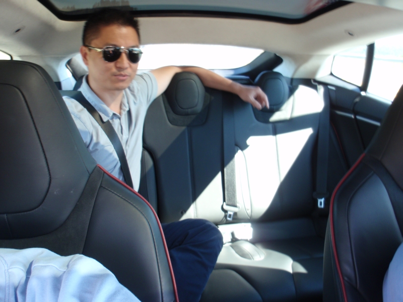 Woman driving TeslaAh, the infamous Tesla test drive in Lincoln City.
