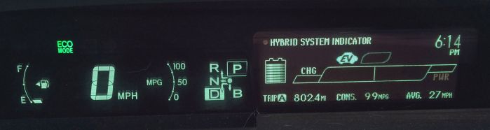 1.  My gas mileage.  I just filled up last week, and got over 800 miles and 99 MPG on the last tank.  I drive a 2012 Toyota Prius Plug-In.  It’s ridiculous.