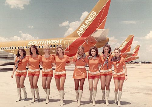 That airline just makes me sick! All the stewardesses (no stewards of course) were little bitty “nothing” orange shorts and tops and they all just flirt like you wouldn’t believe with the passengers. They had an add in the Southwest Airlines magazine that should have been in Playboy!
